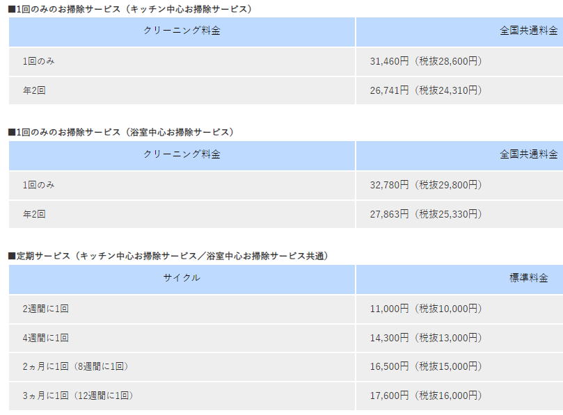 ※料金は、標準的なお部屋をお掃除した場合の金額です。物が著しく多い、1室が特別に広い、特別なご要望が多いなどの場合は、お見積りのうえ、標準料金を上回ることがありますので、ご了承ください。