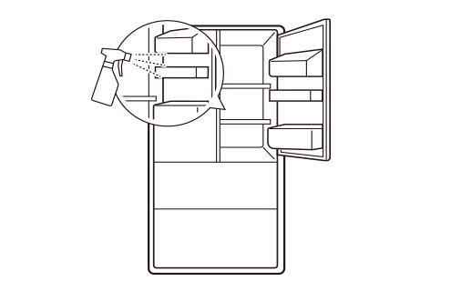 庫内の汚れは、除菌効果のある 酸素系漂白剤の溶液で拭き取ります。